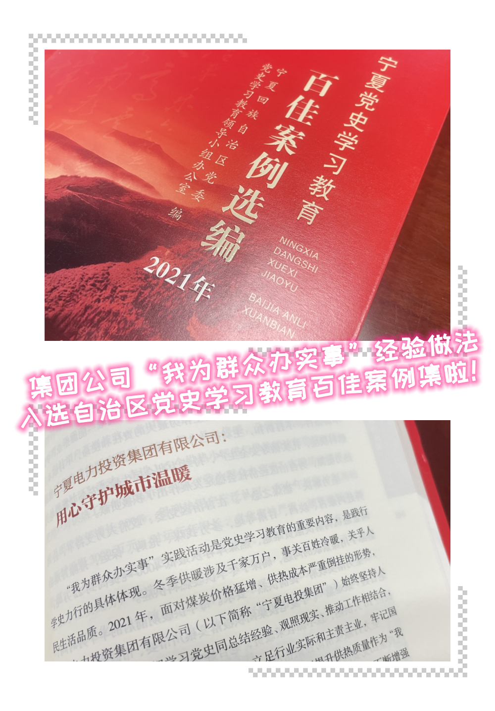 集團(tuán)公司“我為群眾辦實(shí)事”的優(yōu)秀做法入選《寧夏黨史學(xué)習(xí)教育百佳案例選編》